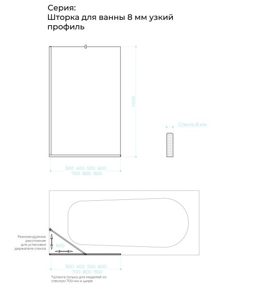 Шторка на ванну в профиле by Deonria C-140-60-8-T-HM 60см хром матовый/прозрачный купить