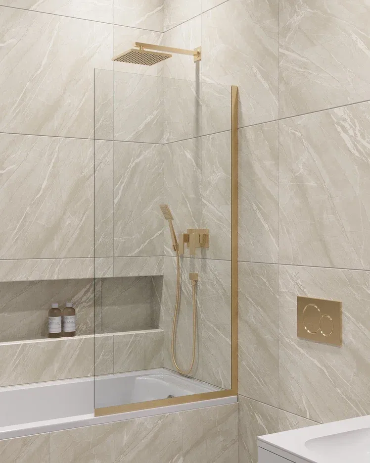 Шторка на ванну в профиле by Deonria C-140-70-8-T-G 70см золото/прозрачный купить