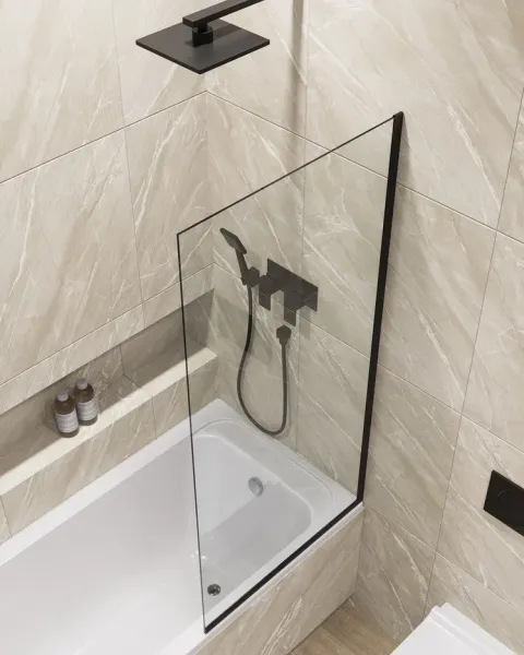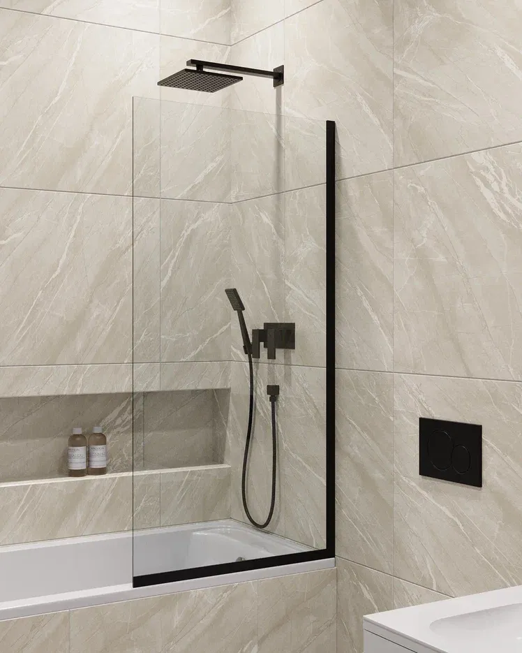 Шторка на ванну в профиле by Deonria C-140-80-8-T-B 80см чёрный/прозрачный купить