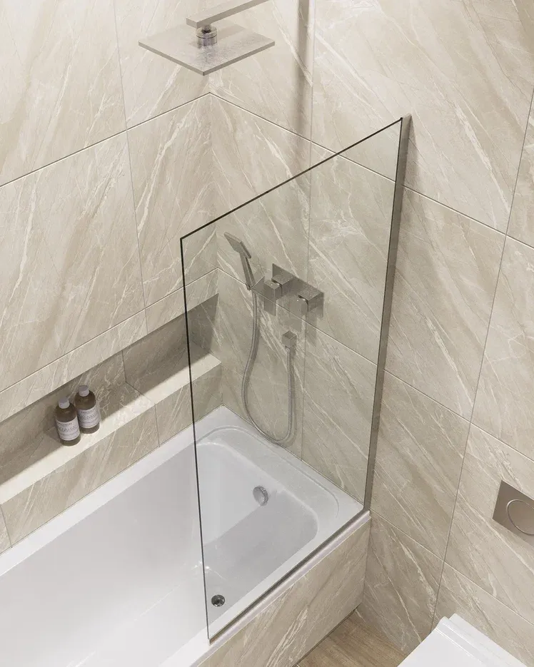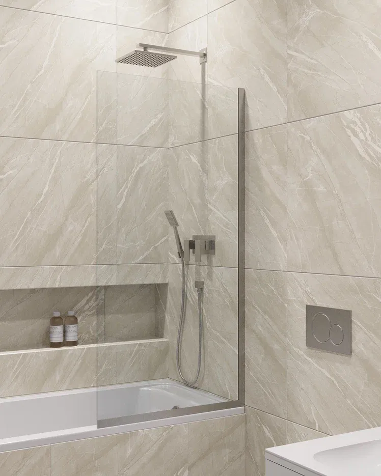 Шторка на ванну в профиле by Deonria C-140-90-8-T-HM 90см хром матовый/прозрачный купить