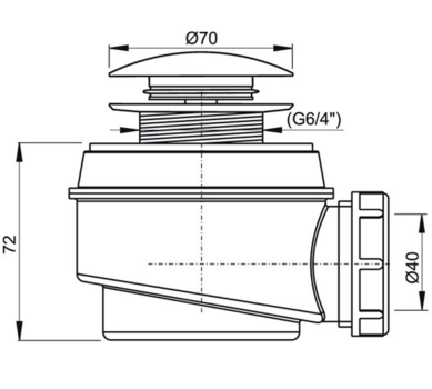 - Для душевых поддонов со сливным отверстием Ø52 мм