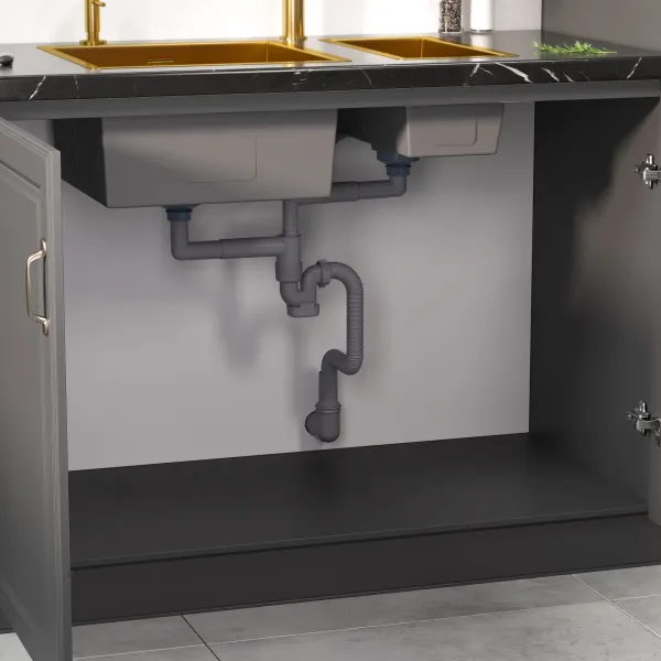 Сифон для двучашевой кухонной мойки БЕЗ ВЫПУСКА Reflexion Part RX9002PT