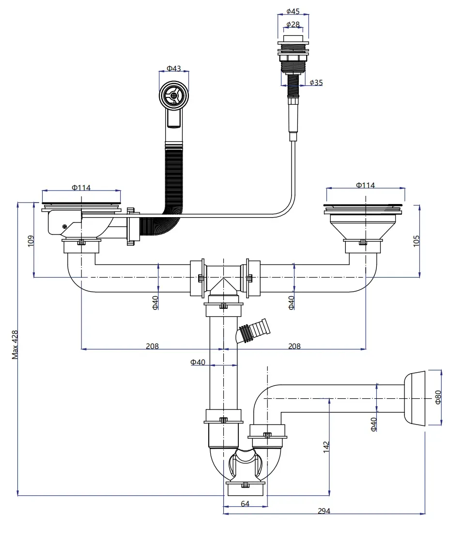 Сифон для мойки GranFest 13G14PB4-P2A п/авт черн купить