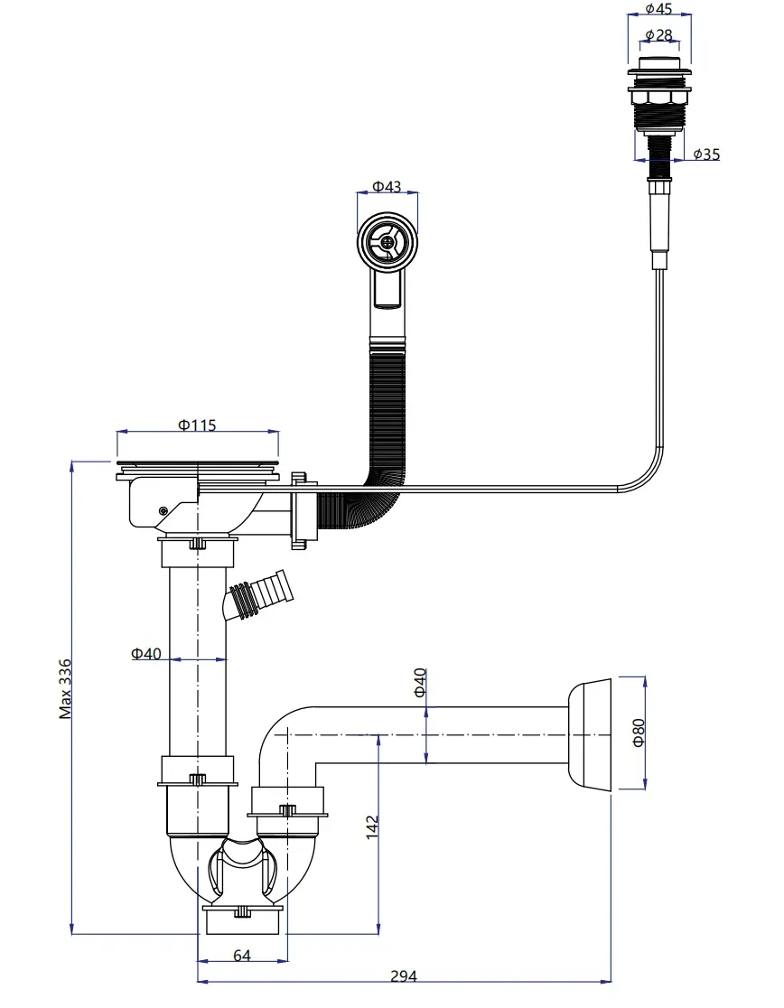 Сифон для мойки GranFest 13PB2-P2 павт черн