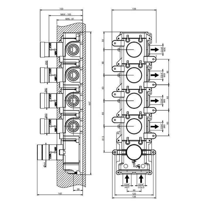 Скрытая часть Gessi для встраиваемого термостата на 4 независимых выхода в цвете хром — это идеальное решение для тех, кто ценит комфорт и функциональность в ванной комнате. Эта модель позволяет одновременно управлять несколькими источниками воды, обеспечивая максимальную гибкость в использовании. Элегантный хромированный финиш придаёт устройству современный и стильный внешний вид, гармонируя с любым интерьером. Инновационная технология терморегуляции обеспечивает стабильную температуру воды, что делает процесс принятия душа или ванны особенно приятным. Простота установки скрытых компонентов позволяет создать аккуратный и минималистичный дизайн, освобождая пространство от ненужных деталей. Высокое качество материалов гарантирует долговечность и надёжность в эксплуатации. Кроме того, Gessi известна своим вниманием к деталям, что видно в каждом аспекте данной модели. Скрытая часть термостата Gessi — это не только удобство, но и элегантное дополнение к вашему дому, которое подчеркивает ваш изысканный вкус.