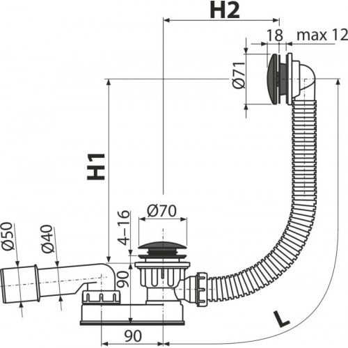 Слив-перелив для ванны AlcaPlast 80см клик-клак черный A507BLACK-80