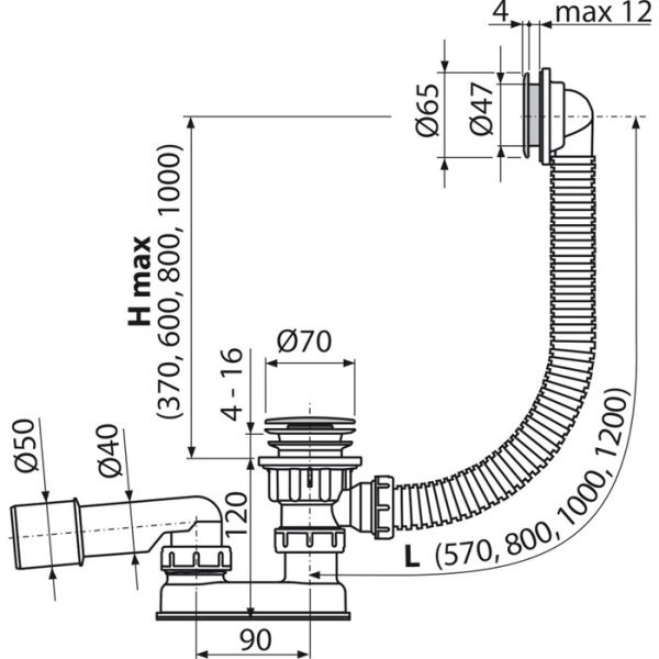Слив-перелив для ванны AlcaPlast клик-клак 100см металл-пластик хром A505KM-100 купить