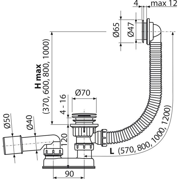Слив-перелив для ванны AlcaPlast клик-клак 57см металл-пластик хром A505KM