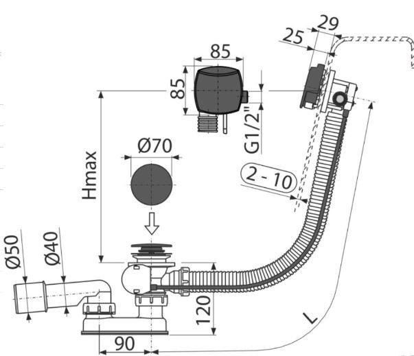 • Для ванн со стоковым отверстием Ø52 мм