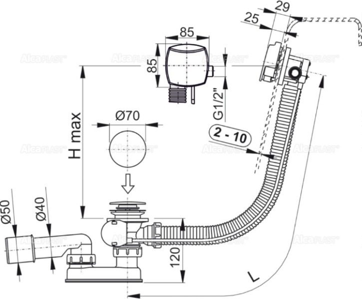 • Для слива воды из ванны в канализационный сток