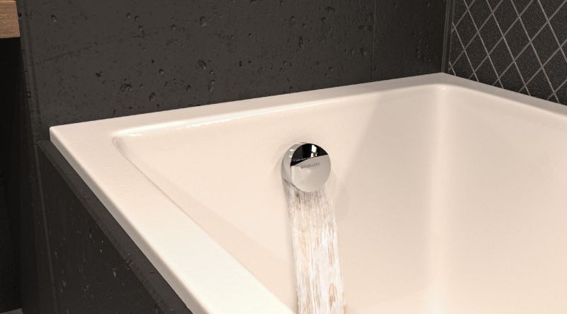 Наполнение ванны через перелив.