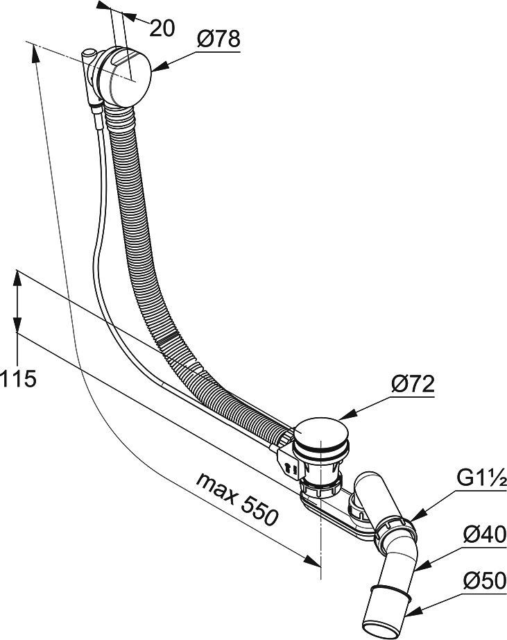 - с гибкой переливной трубой