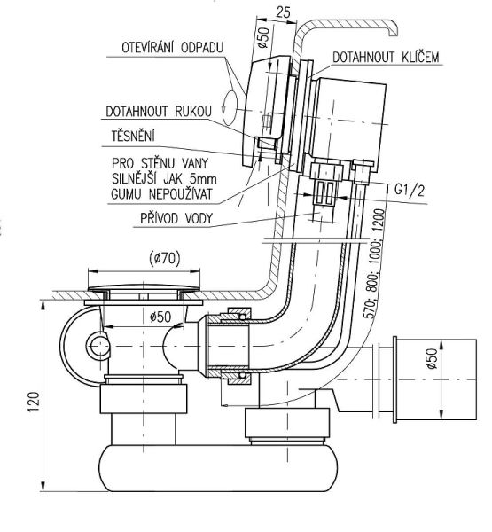 Слив-перелив Rav Slezak NP0002/570SM Click-Clack БронзаNP0002/570SM Сифон для ванны металл/пластик 570 мм ЦВЕТ БРОНЗА, наполнение водой через слив-перелив