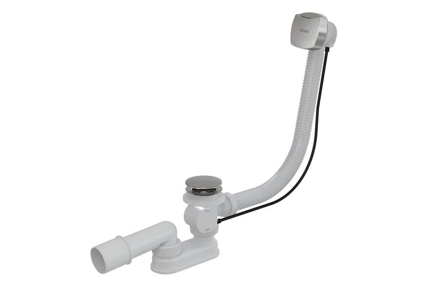 Вы можете выбрать сточный комплект для ванны с переливом длиной 570 мм или 800 мм с управлением сливом при помощи тросика или механизмом ClickClack. В состав каждого сточного комплекта входит сифон.