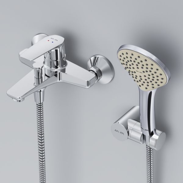 Top-Seller’е. Брутальный и трендовый дизайн: уникальная шестигранная форма выделяется среди однообразных стандартных смесителей в доступном ценовом сегменте.Эксклюзивная разработка: специально спроектированный для АМ.РМ керамический картридж SoftMotion 35 мм обеспечивает оптимальную регулировку температуры, а также позволяет выдерживать любые перепады давления. Точная инженерия для Вашего комфорта: благодаря обширной зоне движения ручки управлять температурой воды еще проще.В комплекте душевой набор: стильный ручной душ 110 мм 1 режим, настенный держатель с регулировкой угла наклона, душевой шланг с защитой от скручивания.