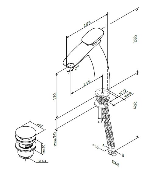 • Высота смесителя: