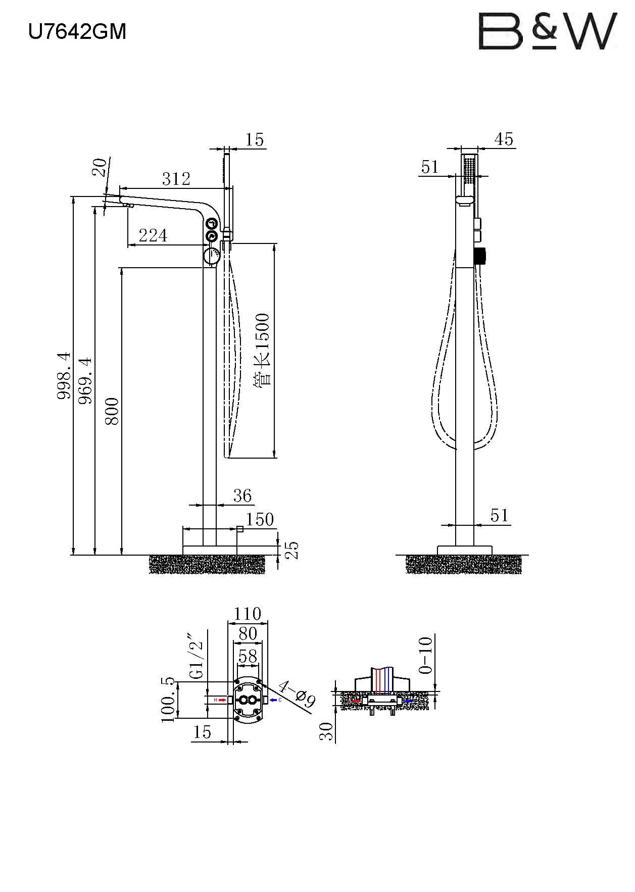 Смеситель Black & White Universe 7642GM для ванны и душа купить