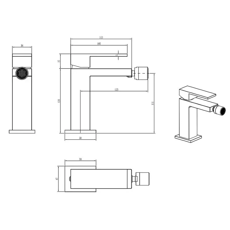 Смеситель для биде Boheme Qubic, Способ монтажа: на биде Излив: фиксированный Аэратор Neoper... Подробнее