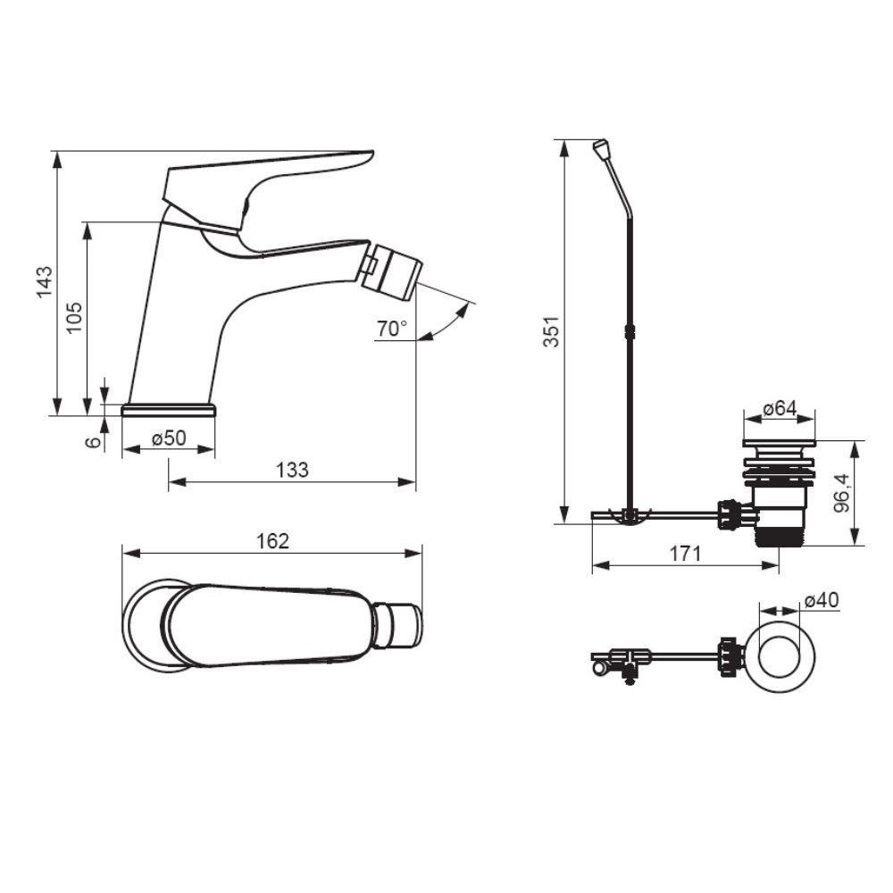 Смеситель для биде Damixa Jupiter 770240000 с донным клапаном хром