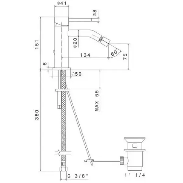 Однорычажный смеситель для биде выполнен из нержавеющей стали AISI 316: этот металл обладает особой устойчивостью к механическим воздействиям, гипоаллергенен, не подвержен коррозии. В комплект входит донный клапан.