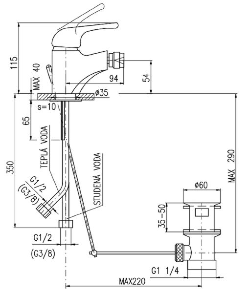 • Высота смесителя: