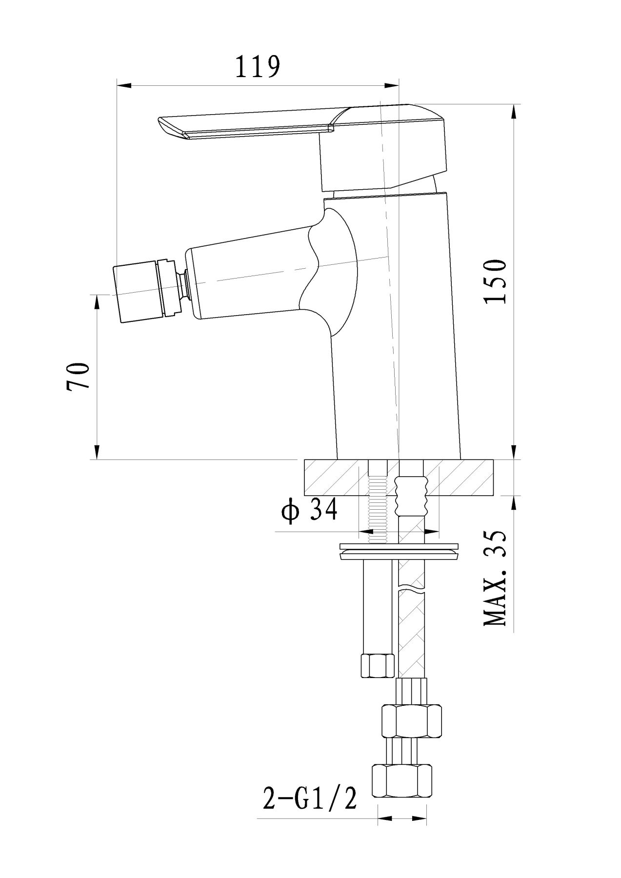 • Высота смесителя: