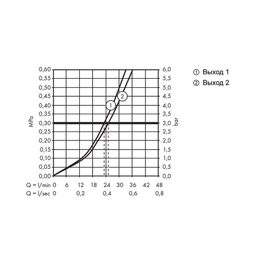 Расход воды через нижний вывод: 23 л/мин
