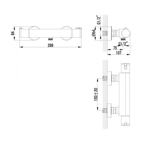 • При монтаже данной модели подвод горячей воды осуществляется только слева! В противном случае поддержание термостатом заданной температуры невозможно.