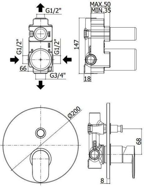 Смеситель встраиваемый для душа на 2 выхода с накладкой латунной диам.200мм, девиатор-кнопка, ХромСмеситель для душа Paffoni Candy CA015CR (с внутренней частью) предназначен для душа. Своим лаконичным дизайном и колористикой он внесет в интерьер помещения стильный акцент, подчеркнув его своеобразие. Он произведен из надежного материала латунь, который не подвержен коррозии, а потому прослужит не создавая проблем. Изделие является оптимальным примером достойного качества. Управление в смесителе предусмотрено однорычажное, что удобно для любителей такого типа смесителей. Высокую работоспособность и долговечность смесителю гарантирует керамический картридж, отличительной чертой которого является беспроигрышная конструкция - залог бесперебойной работы в течение длительного времени. Не зря гарантия на смеситель – 5 лет, в течение которого производитель Paffoni заверяет в его бесперебойной работе. Форма излива в смесителе - нет, а тип - нет. При покупке учтите, что подводка у смесителя жесткая, что важно для его установки.