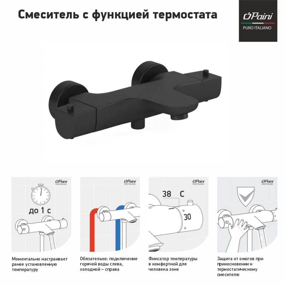 Смеситель для душа Paini Nove 09YO111TH с термостатом чёрный матовый купить
