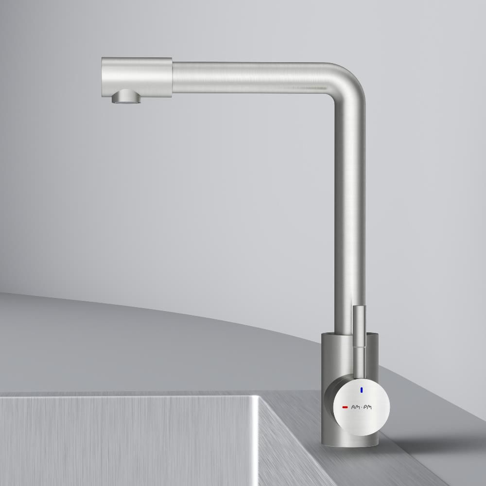 L-образная архитектура смесителя идеально подойдет для использования с мойкой любого размера и значительно упростит такие задачи, как наполнение больших емкостей. Сатиновый цвет сделает этот смеситель главным акцентом в любом интерьере.