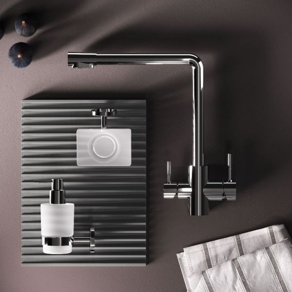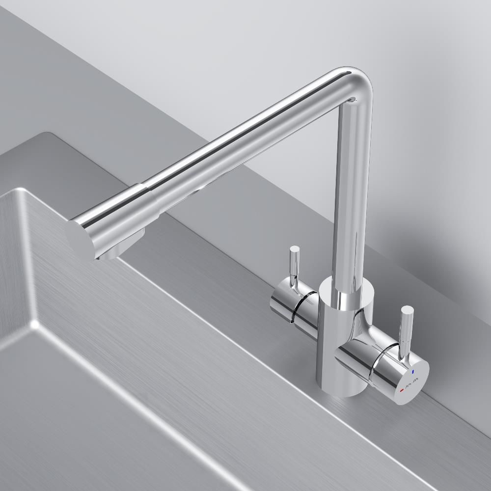 Эксклюзивное покрытие Everlast – вдвое превышает отраслевые стандарты по прочности и износостойкости. Ювелирный блеск и прочность покрытия достигаются по стандарту Chrome plating standard NSS 80H. L-образная архитектура смесителя идеально подойдет для использования с мойкой любого размера и значительно упростит такие задачи, как наполнение больших емкостей.