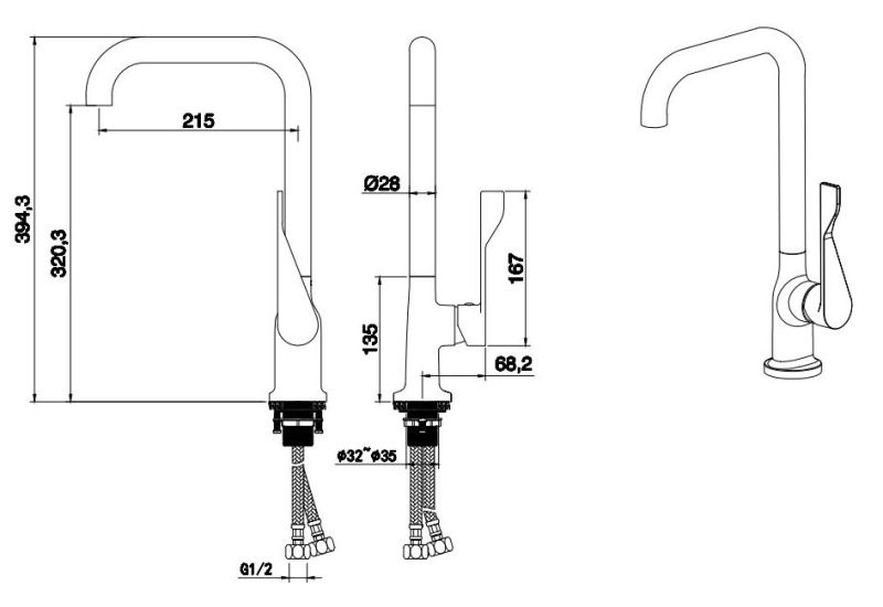 Стандарт подводки: 1/2"