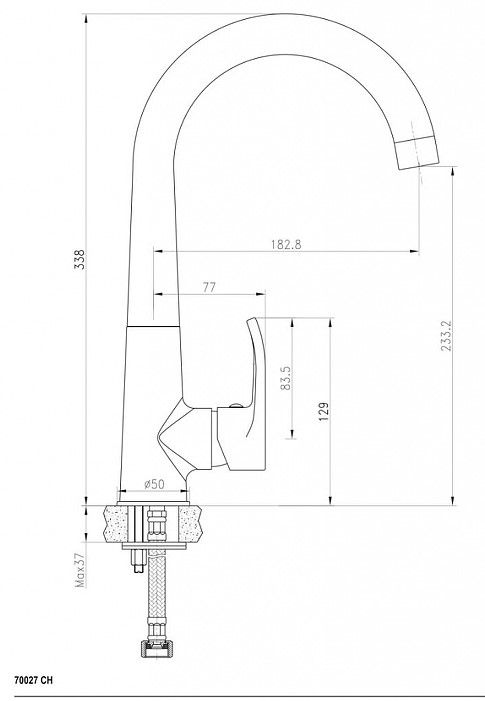 Смеситель для кухонной мойки, поворотный литой R образный излив, система монтажа EASY-FIX (облегченный монтаж) с дополнительным пластиковым опорным кольцом для монтажа на металлической мойке, гибкая подводка G3/8", картридж 40 мм с функцией HWTC (ограничение максимальной температуры горячей воды), с функцией CLICK (ограничение потока воды), металлическая рукоятка с индикаторами горячей/холодной воды, аэратор CASCADE M24 x1, соответствие EN817