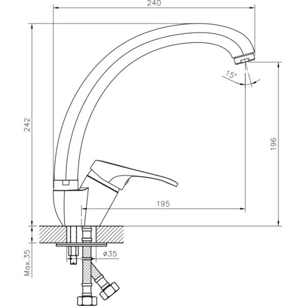 • Высота смесителя: