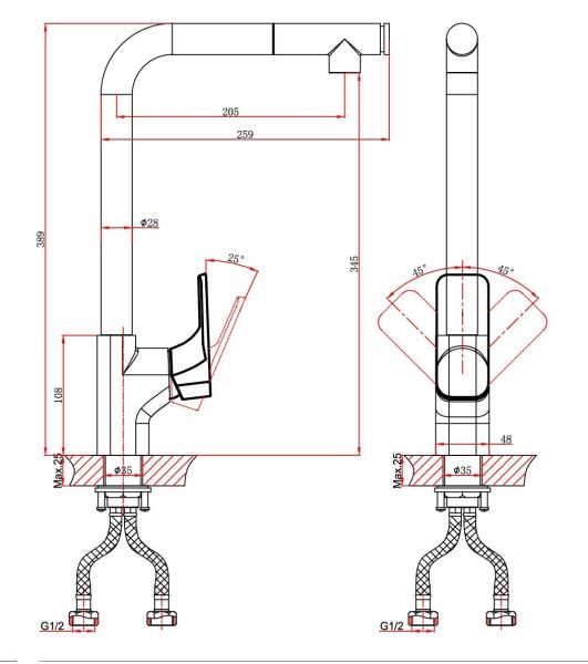 - Гибкая подводка 40 см идёт в комплекте для быстрой установки.