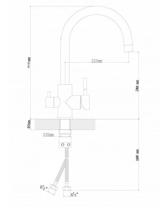 • Высота смесителя: