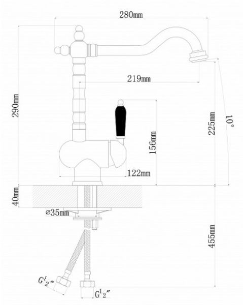 • Высота смесителя:
