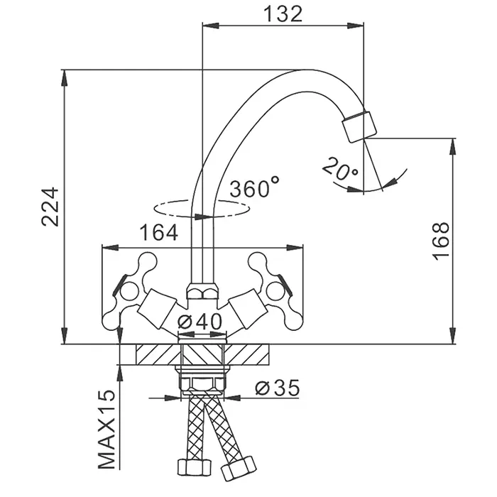 • Высота смесителя: