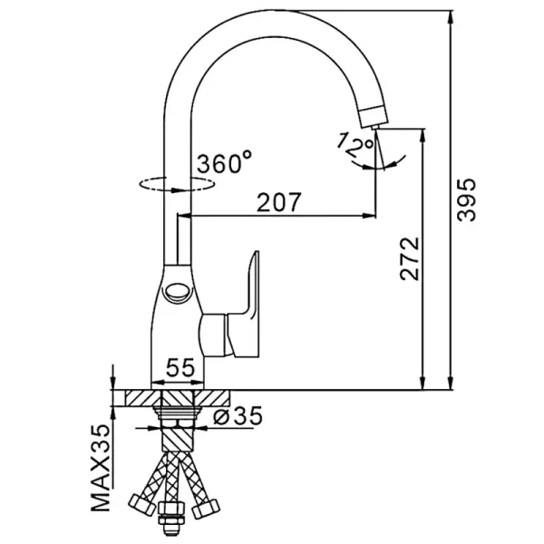• Высота смесителя: