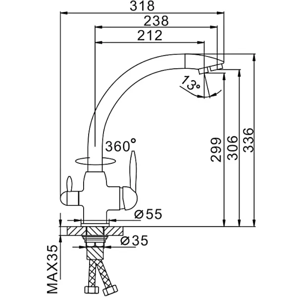 • Высота смесителя: