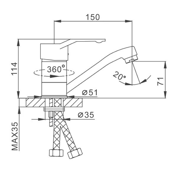 • Высота смесителя: