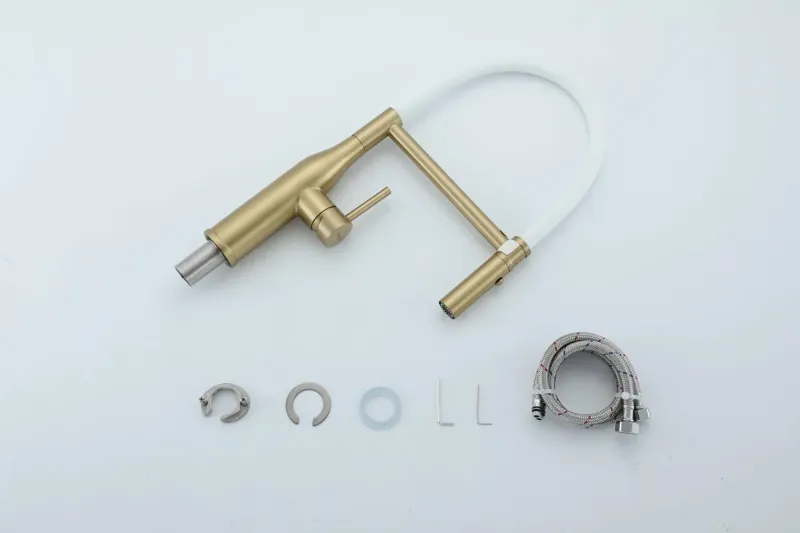 Смеситель для кухни Gappo G4098-23 с гибким изливом золотой сатин