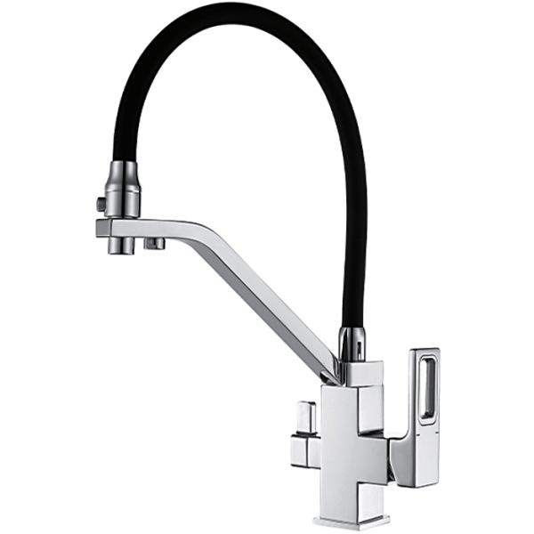 Смеситель для кухонной мойки с гибким силиконовым носом-изливом и функцией подключения фильтра в... Подробнее