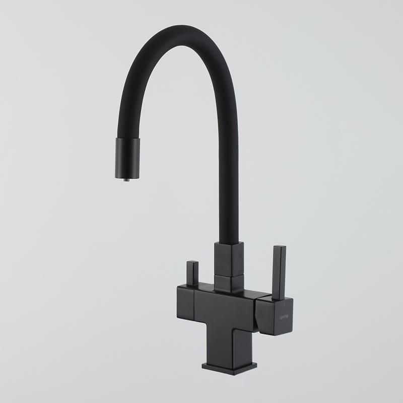 Смеситель для кухни Gappo G4395-36 с подключением фильтра питьевой воды и гибким изливом чёрный купить