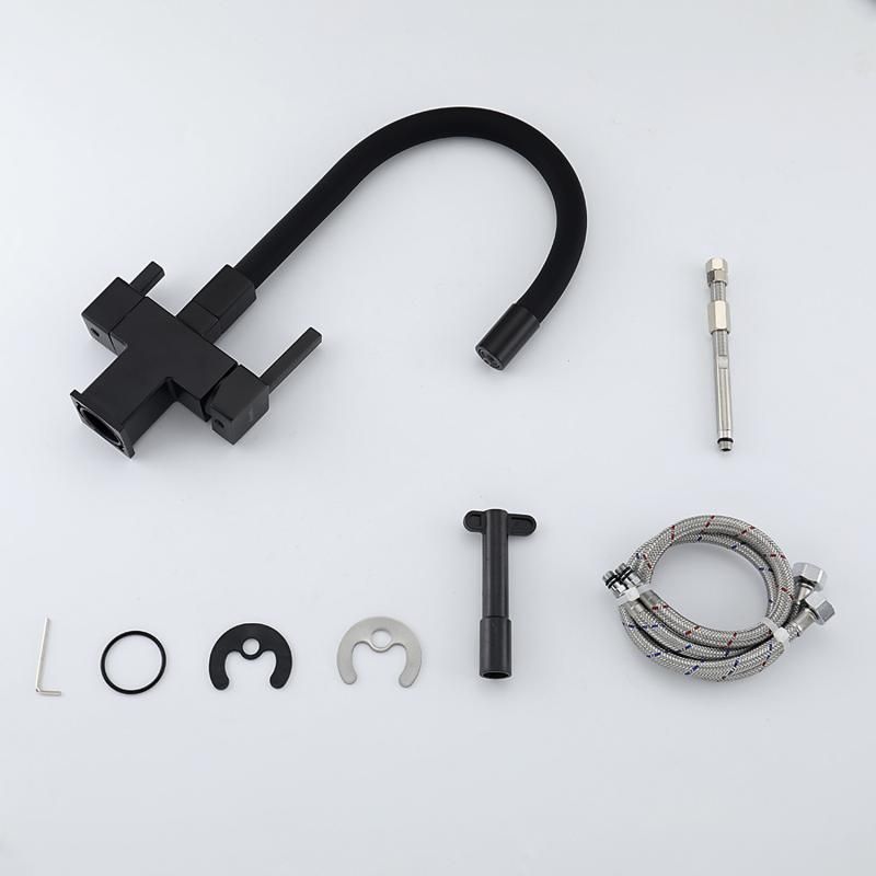 Смеситель для кухни Gappo G4395-36 с подключением фильтра питьевой воды и гибким изливом чёрный