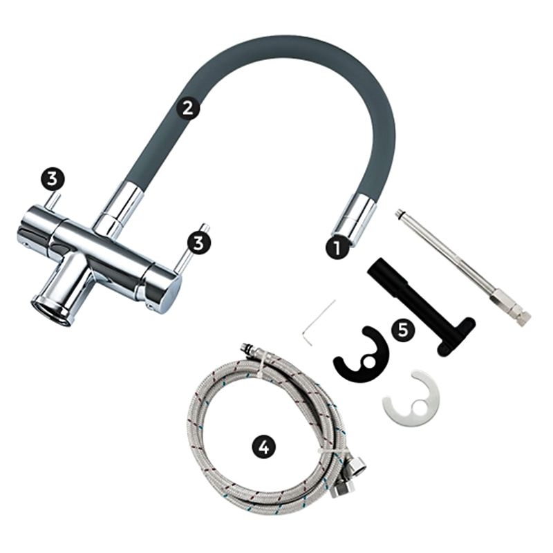 Cмеситель для кухонной мойки Gappo G4398-30 с подключением фильтра питьевой воды - однорычажный смеситель из латуни с хромированным покрытием и гибким изливом из силикона. Смеситель подключается к системе очистки воды.