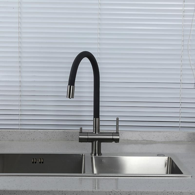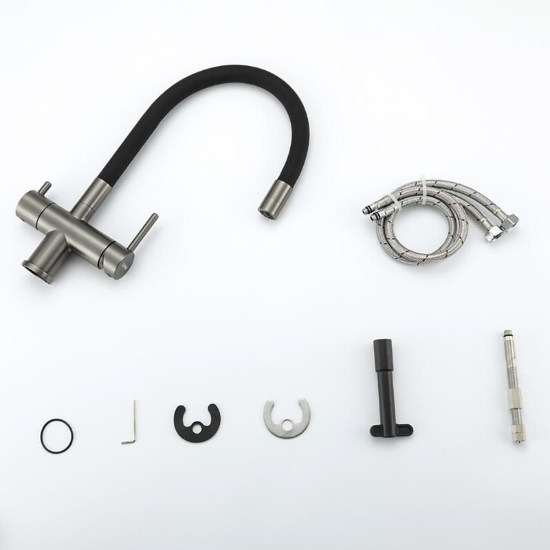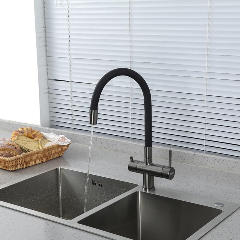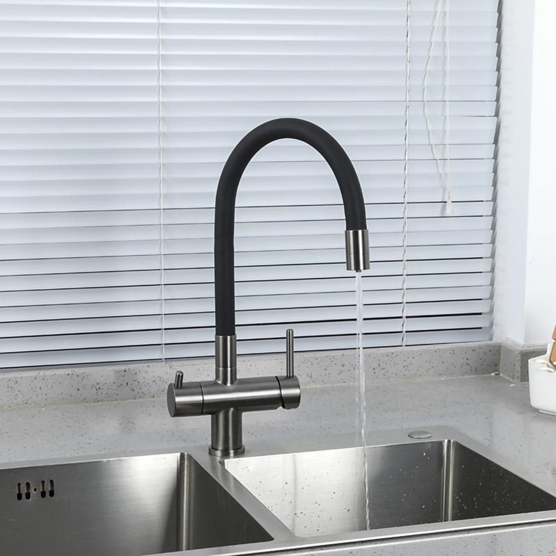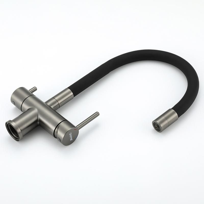 Смеситель для кухни Gappo G4398-39 под фильтр с гибким изливом оружейная сталь