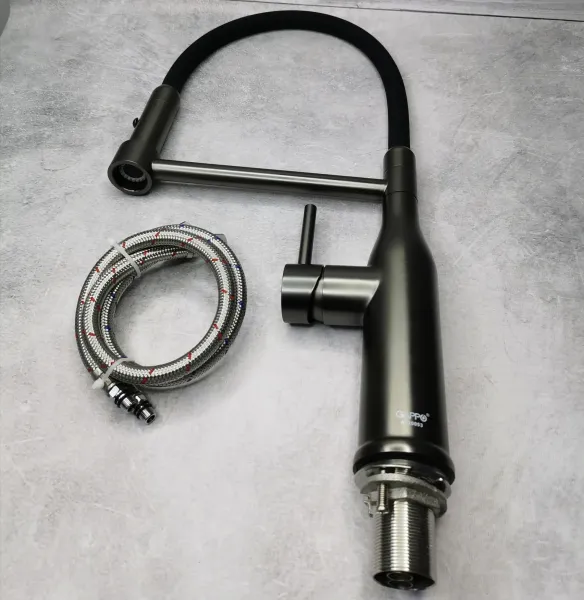Смеситель для кухни Gappo G4398-51 с гибким изливом оружейная сталь