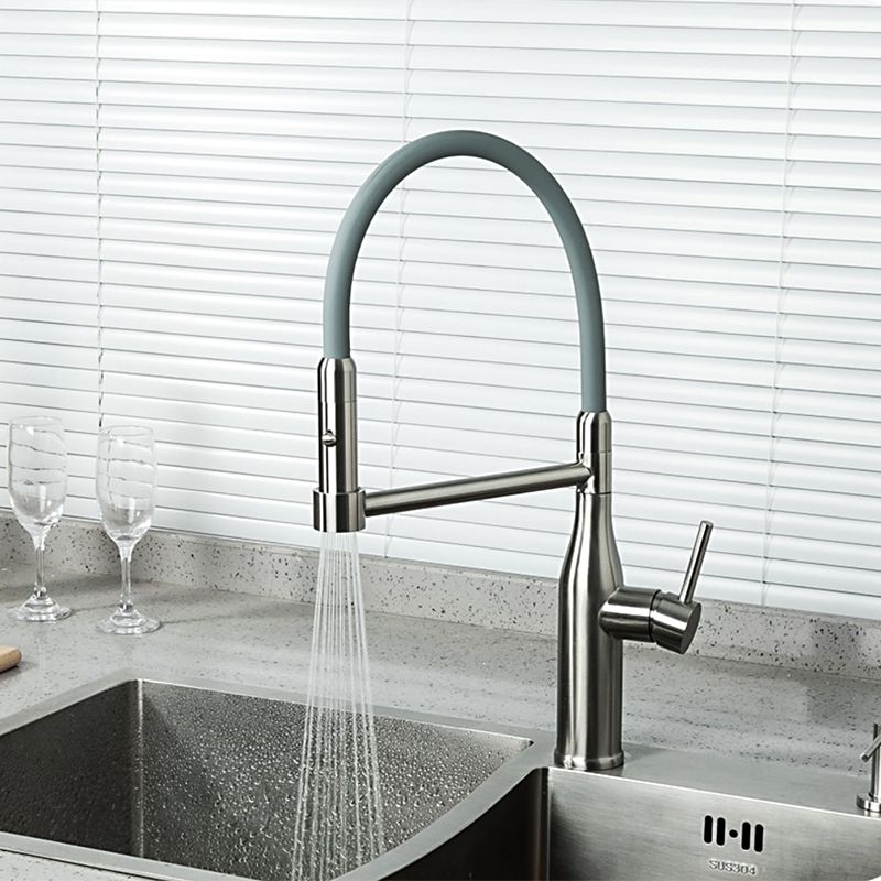 Смеситель для кухни Gappo G4398-55 с гибким изливом серый/сатин